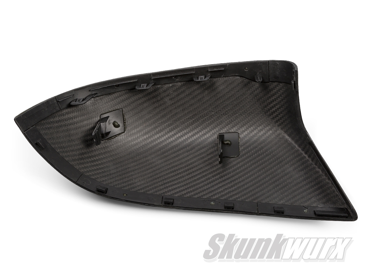 The mirror covers are made of multiple layers of Toray T300 Carbon Fiber with a 3K twill weave and cured with an epoxy resin and finished with a high gloss UV-resistant topcoat, using the pre-preg/autoclave method to give an ultra-lightweight product with superior strength and resilience. The T300 carbon material by Toray is the baseline carbon fiber used in automotive and aerospace applications. It has a 30 year production history and is known for its balanced composite properties, high quality, consistency, and reliability.